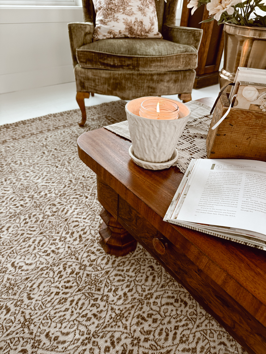 I LOVE vintage items. Vintage anything is my vibe. Vintage rugs have withstood the test of time. Lots of them have worn spots in them which I actually love. I wonder how many different people have walked on them and where they have been in their past life, just as I do with all of my antiques. I purchased my first vintage rug online and absolutely loved it. It was exactly what I hoped for. And I was hooked. It is the one we have currently in the entryway. The rust and cream colors match my style perfectly and the pattern is one that I really love. Also, the worn spots are perfect.